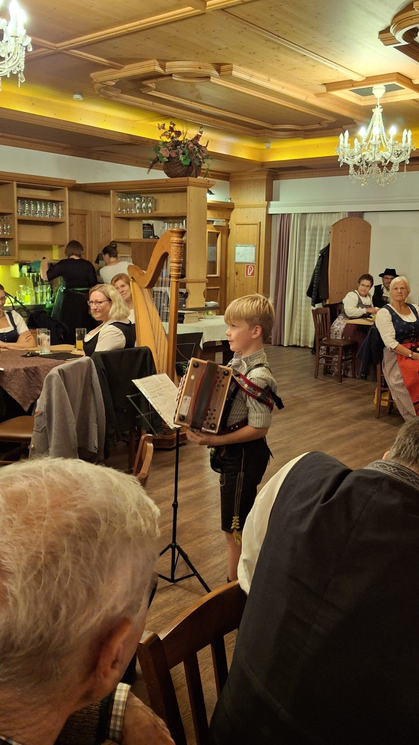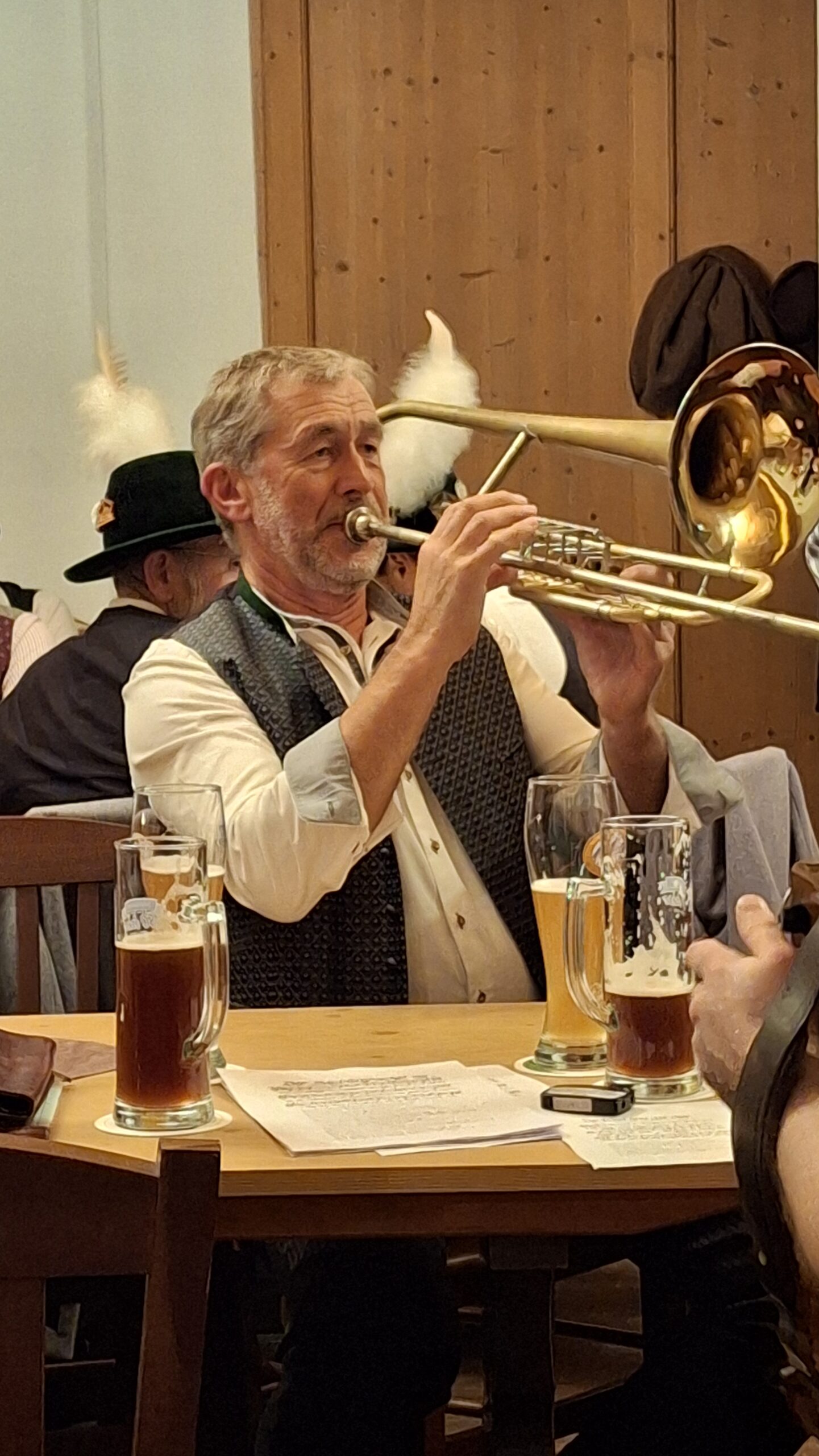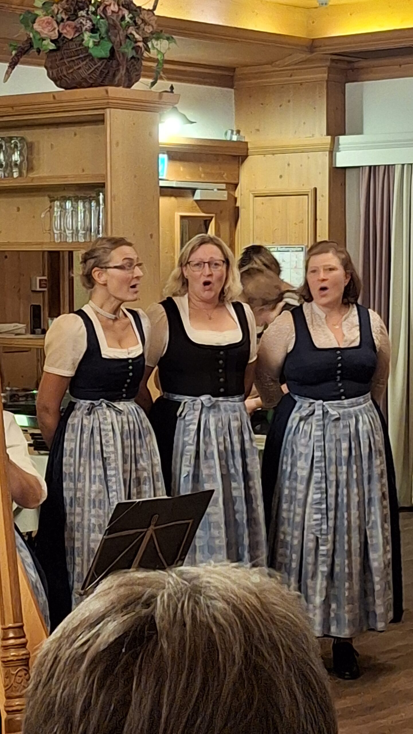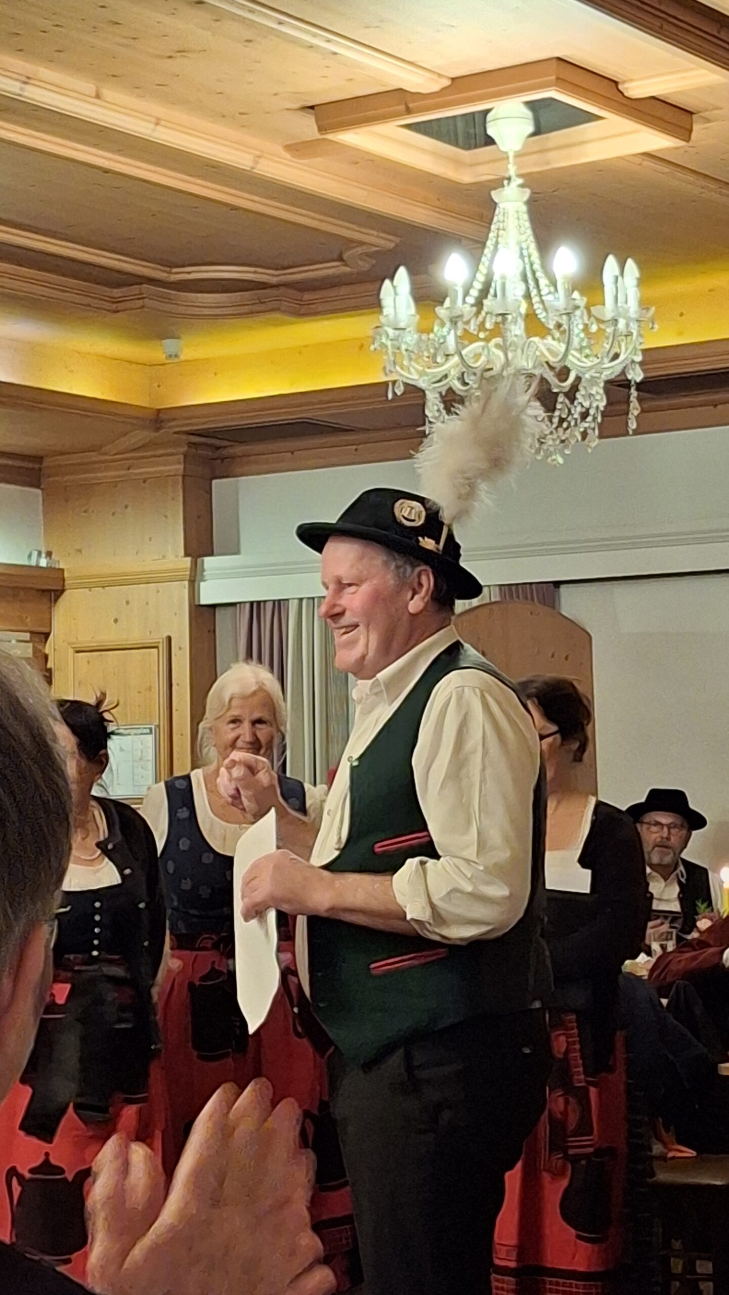 Auch das Publikum wurde mit einbezogen und durfte bei drei Liedern kräftig mitsingen. Zwischendurch wurden Witze erzählt, und nach dem offiziellen Programm wurde im Saal weiter musiziert und der Abend klang gemütlich aus.