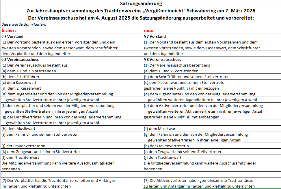 Diese Satzungsänderung wird dann in der Jahreshauptversammlung am 7. März 2026 vorgelesen und beschlossen. ¾ der Anwesenden müssen diese zustimmen.