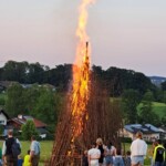 Einige Tage zuvor, wußte man noch nicht, ob das Feuer entzündet werden durfte. Da es aber endlich regnete, war das Verbot aufgehohen. Gegen 21 Uhr war es endlich soweit und das Feuer wurde angezündet.